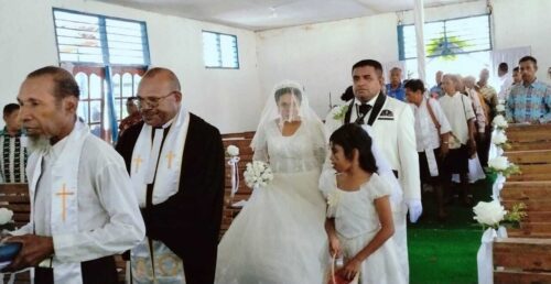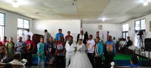 Pemberkatan pernikahan dipimpin oleh Pdt. Herman Aso selaku Ketua Klasis Yapen Timur, disaksikan oleh puluhan jemaat dan ratusan tamu undangan. Suasana khidmat dan penuh kebahagiaan mengiringi setiap kata, gerakan, dan tatapan cinta antara Ebzon dan Adomina, pasangan serasi yang telah lama bertaut dalam pengabdian dan pelayanan masyarakat.
