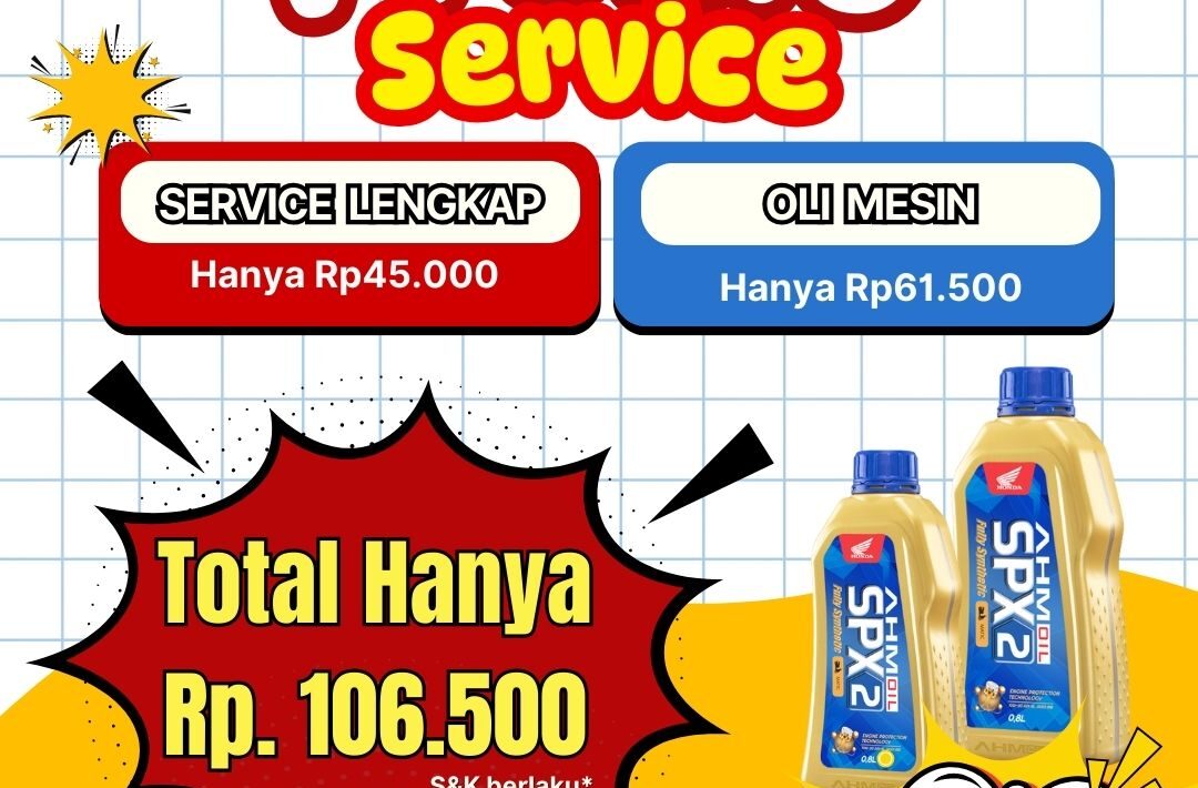 Sehingga total biaya service hanya sebesar Rp106.500. Promo menarik ini berlaku khusus di AHASS Astra Motor Yukum Jaya dengan syarat dan ketentuan yang berlaku.