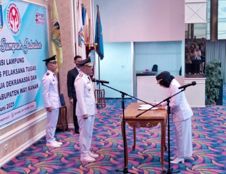 Pelantikan dilakukan di Balai Keratun Pemprov Lampung, Rabu (10/06/2025). Disaksikan Anggota DPR-RI Marwan Cik Hasan, Wakil Gubenur Lampung, Jihan Nurlela dan sejumlah pejabat Pemprov Lampung serta beberapa Bupati di Lampung.