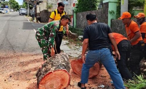 (pelitaekspres.com) – BANDAR LAMPUNG– Dalam waktu singkat usai mendapat laporan, Sertu Heri Hermawan, Babinsa Kelurahan Enggal Koramil 410-05/TKP, langsung bergerak cepat menuju lokasi pohon tumbang di Jalan Hos Cokroaminoto, Sabtu (25/10/2025) siang. Kejadian yang dipicu angin kencang ini sempat membuat khawatir warga karena pohon berukuran besar tersebut menimpa sebuah mobil.
