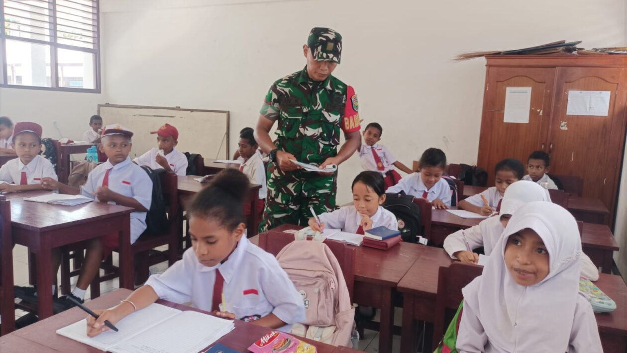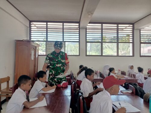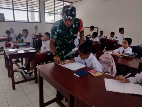 (pelitaekspres.com) -SERUI – Kepedulian terhadap dunia pendidikan terus ditunjukkan oleh Babinsa Koramil 1709-01/Serui, Koptu Aan Kurniawan. Kali ini, ia meluangkan waktunya untuk ikut serta dalam kegiatan belajar mengajar di SD Inpres Tingkat Serui, yang berlokasi di Jalan Frans Kaisepo, Distrik Yapen Selatan, Kabupaten Kepulauan Yapen.Senin(27/10/2025).