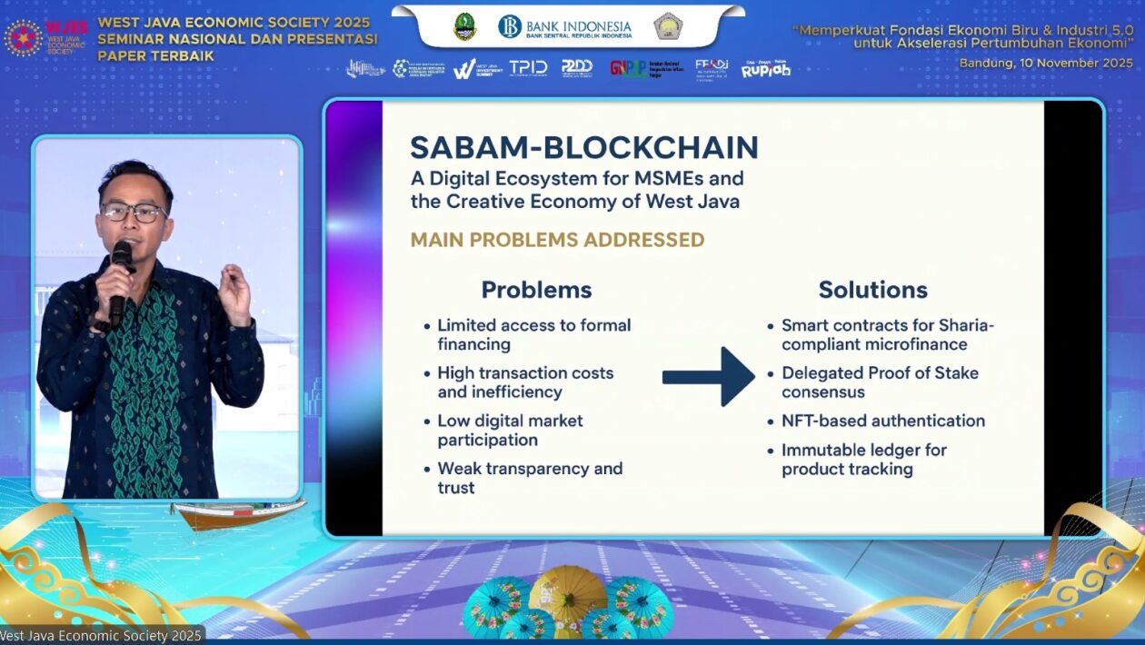 Sabam Parjuangan yang merupakan Dosen Prodi Sistem Komputer Institut Informatika dan Bisnis (IIB) Darmajaya ini mengangkat judul SABAM – BLOCKCHAIN: A Digital Ecosystem for MSMEs dan Creative Economy of West Java’. Paper mahasiswa program doktoral ITB ini mengenalkan sebuah ekosistem blockchain inovatif yang dirancang untuk meningkatkan inklusi keuangan, efisiensi transaksi, dan transparansi dalam sektor UMKM serta ekonomi kreatif Jawa Barat.