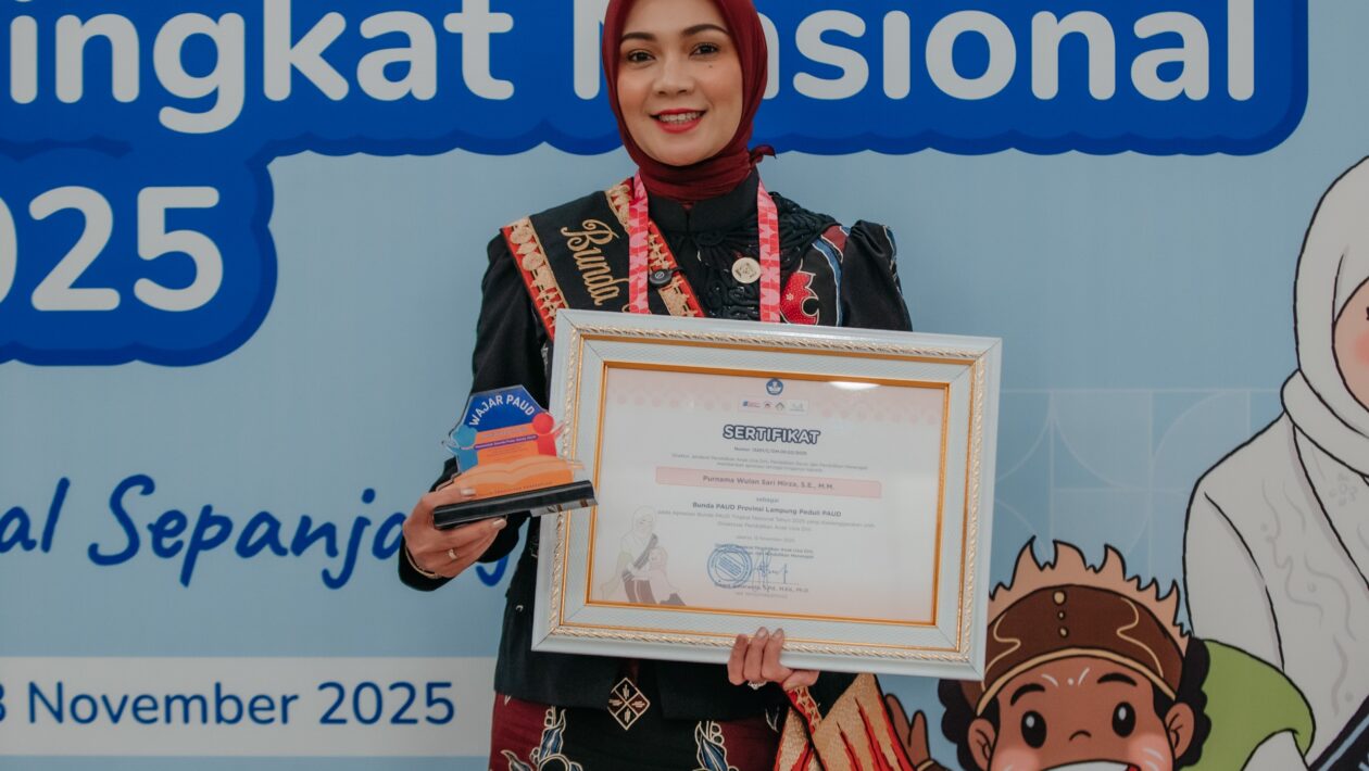 (pelitaekspres.com) – JAKARTA – Bunda PAUD Provinsi Lampung, Purnama Wulan Sari Mirza (Batin Wulan), menerima penghargaan Bunda PAUD Provinsi Peduli PAUD dari Kementerian Pendidikan Dasar dan Menengah Republik Indonesia, Rabu (13/11/2025) malam.