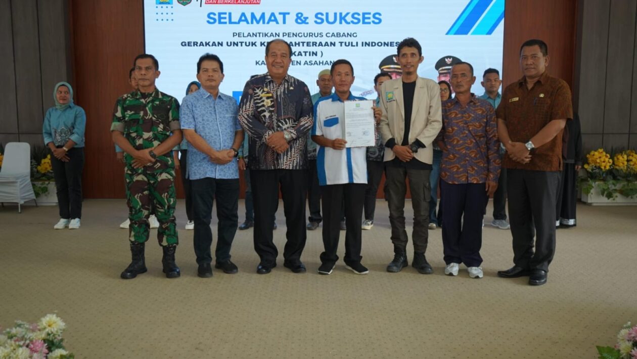 (pelitaekspres.com) – ASAHANĀ – Pemerintah Kabupaten (Pemkab) Asahan mendukung dan memfasilitasi Pelantikan Pengurus Cabang Gerakan untuk Kesejahteraan Tuna Rungu Indonesia (GERKATIN) Kabupaten Asahan yang digelar di Pendopo Rumah Dinas Bupati Asahan. Kegiatan tersebut dihadiri Bupati Asahan Taufik Zainal Abidin, S.Sos., M.Si., Asisten Pemerintahan dan Kesejahteraan Rakyat Setdakab Asahan, para Kepala OPD di lingkungan Pemerintah Kabupaten Asahan, perwakilan Dandim 0208/Asahan, Ketua GERKATIN Provinsi Sumatera Utara Fitra R. Kurnian, pengurus organisasi disabilitas, serta para penyandang disabilitas rungu se-Kabupaten Asahan. Pelantikan ini menjadi bagian dari upaya penguatan peran organisasi penyandang disabilitas sebagai mitra strategis pemerintah daerah dalam mendorong pembangunan yang inklusif dan berkeadilan Jumat (12/12/2025).