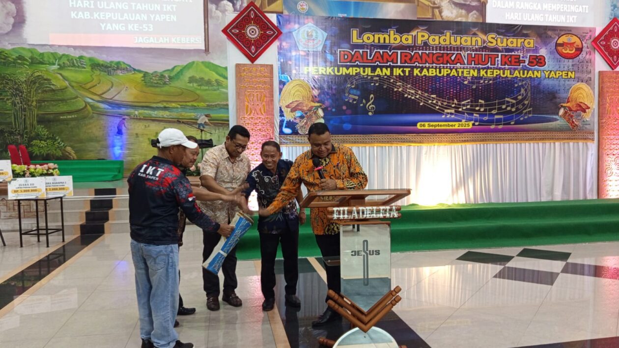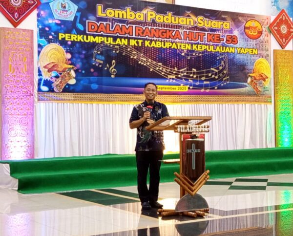 (pelitaekspres.com) –SERUI– Bupati Kepulauan Yapen, Benyamin Arisoi, SE., M.Si, hadir dan secara resmi membuka kegiatan Lomba Paduan Suara dalam rangka memperingati Hari Ulang Tahun ke-53 Perkumpulan Ikatan Keluarga Toraja (IKT) di Serui, Sabtu (6/9/2025).