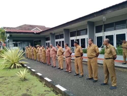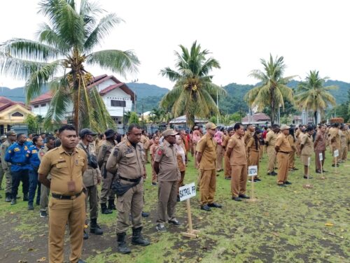 (pelitaekspres.com) -SERUI – Suasana halaman kantor Pemerintah Daerah Kabupaten Kepulauan Yapen pada Senin pagi itu terasa berbeda. Langit masih berwarna abu-abu, dan embusan angin laut membawa aroma serius di udara. Ratusan Aparatur Sipil Negara (ASN) berdiri rapi mengikuti Apel Gabungan, namun suasana tak lagi sekadar rutinitas. Di hadapan mereka, Bupati Benyamin Arisoy berbicara dengan nada tegas dan penuh keprihatinan.