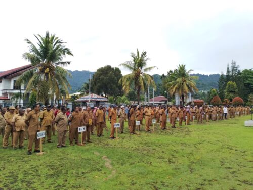 “Kita tinggal dua bulan, dan daerah berpotensi defisit Rp15 miliar lebih. Kegiatan yang bersumber dari PAD tidak bisa dibayar. Inilah kondisi kita,” ujar Bupati Arisoy, menatap para ASN yang diam mendengarkan.