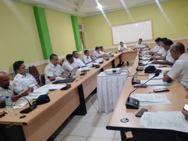 (pelitaekspres.com) -YAPEN- Bupati Kabupten Kepulauan Yapen Benyamin Arisoy dan Wakil Bupati Roi Palunga gelar rapat bersama OPD pemungutan pajak dan retribusi daerah di rungan rapat Bupati lantai dua (2), Rabu (09/04/2025).
