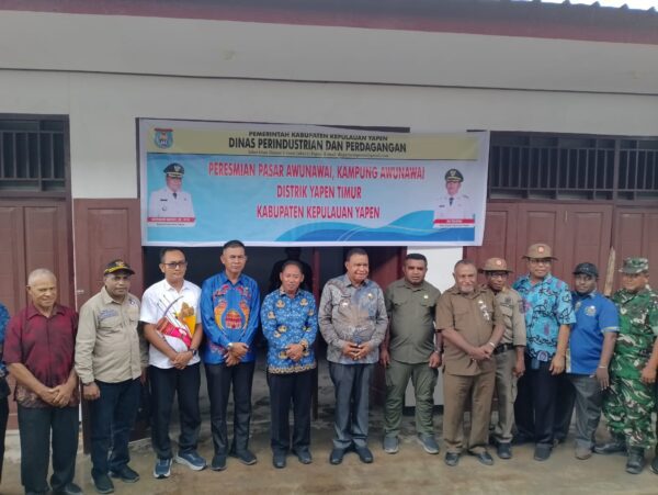 Peresmian Pasar Awunawai  tersebut di tandai dengan penggungtingan pinta dan peresmian Tambatan perahu secara simbolis   oleh Bupati Kepulauan Yapen Benyamin Arisoy didampingi  Wakil Bupati Roi Palunga,  Ketua sementara DPRK Ebzon Sembai dan tamu undangan yang lain.