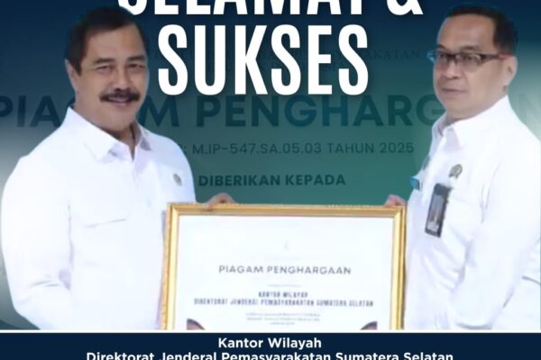 Kanwil Ditjen Pemasyarakatan Sumsel Raih Penghargaan Terbaik Bidang Teknik Pemasyarakatan Tahun 2025
