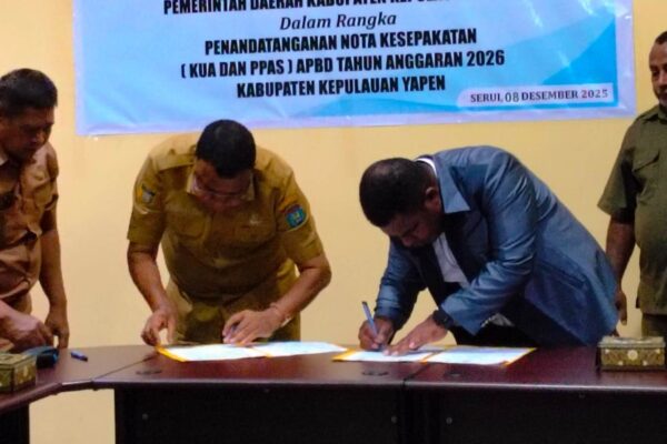 Pemkab, POLITIK DPRK dan Pemda Kepulauan Yapen Tandatangani Nota Kesepakatan KUA-PPAS APBD 2026, Komitmen Bersama untuk Kesejahteraan Rakyat Posted on8 Desember 20258 Desember 2025 (pelitaekspres.com) – YAPEN- Rapat Dewan Perwakilan Rakyat Kabupaten (DPRK) Kepulauan …