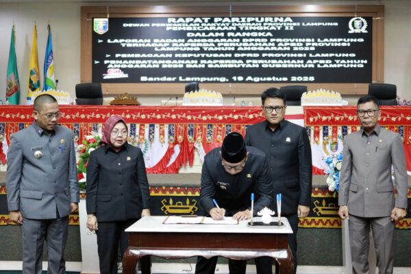 POLITIK Raperda Perubahan APBD 2025 Disepakati, Pemprov dan DPRD Lampung Perkuat Sinergi Posted on20 Agustus 202526 Agustus 2025 (pelitaekspres.com) –BANDARLAMPUNG — Gubernur Lampung Rahmat Mirzani Djausal dan Ketua …