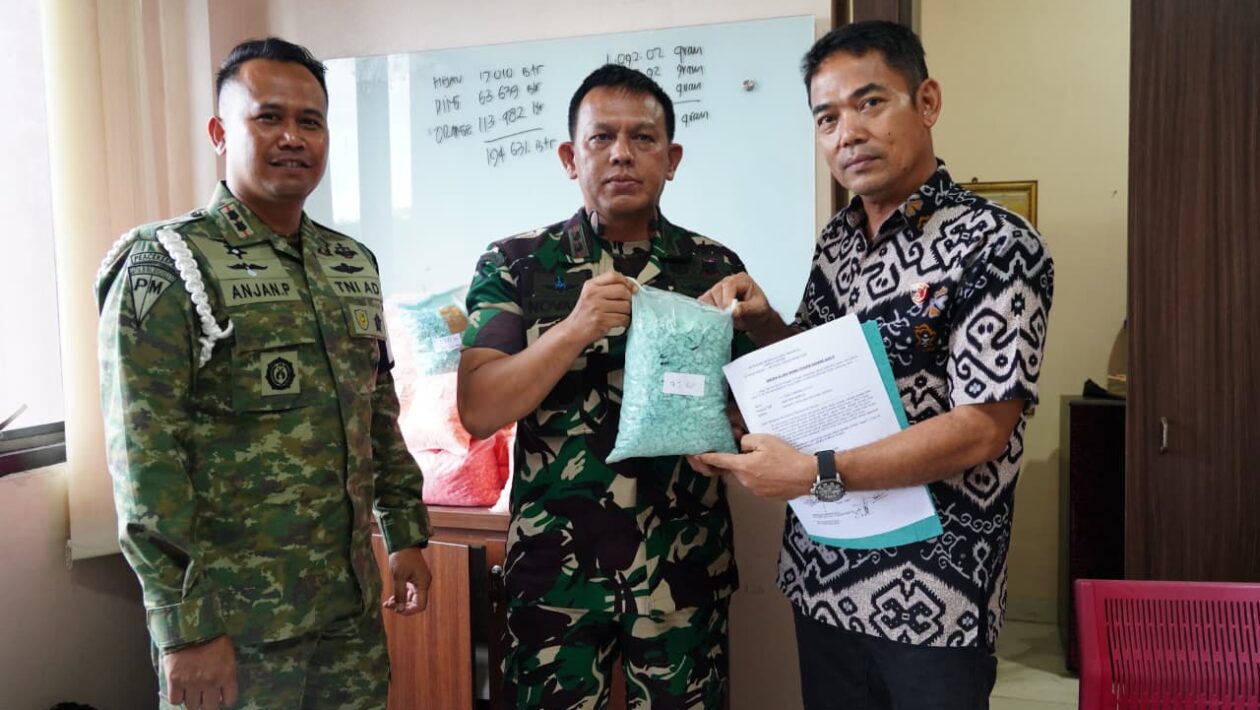 Dandim 0411/KM Serahkan 194.631 Butir Ekstasi Hasil Temuan Prajurit Kodam XXI/RI Kepada Polda Lampung