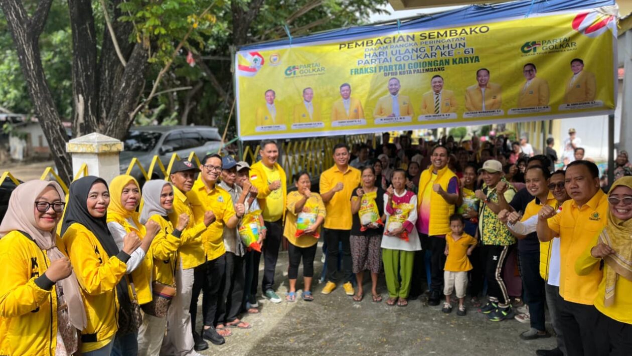 (pelitaekspres.com) -PALEMBANG- Memperingati Hari Ulang Tahun (HUT) Partai Golkar ke-61 tahun 2025, Dewan Pimpinan Daerah (DPD) Partai Golkar Kota Palembang menggelar kegiatan bakti sosial berupa pembagian sembako kepada masyarakat. Minggu, (28/09/2025)