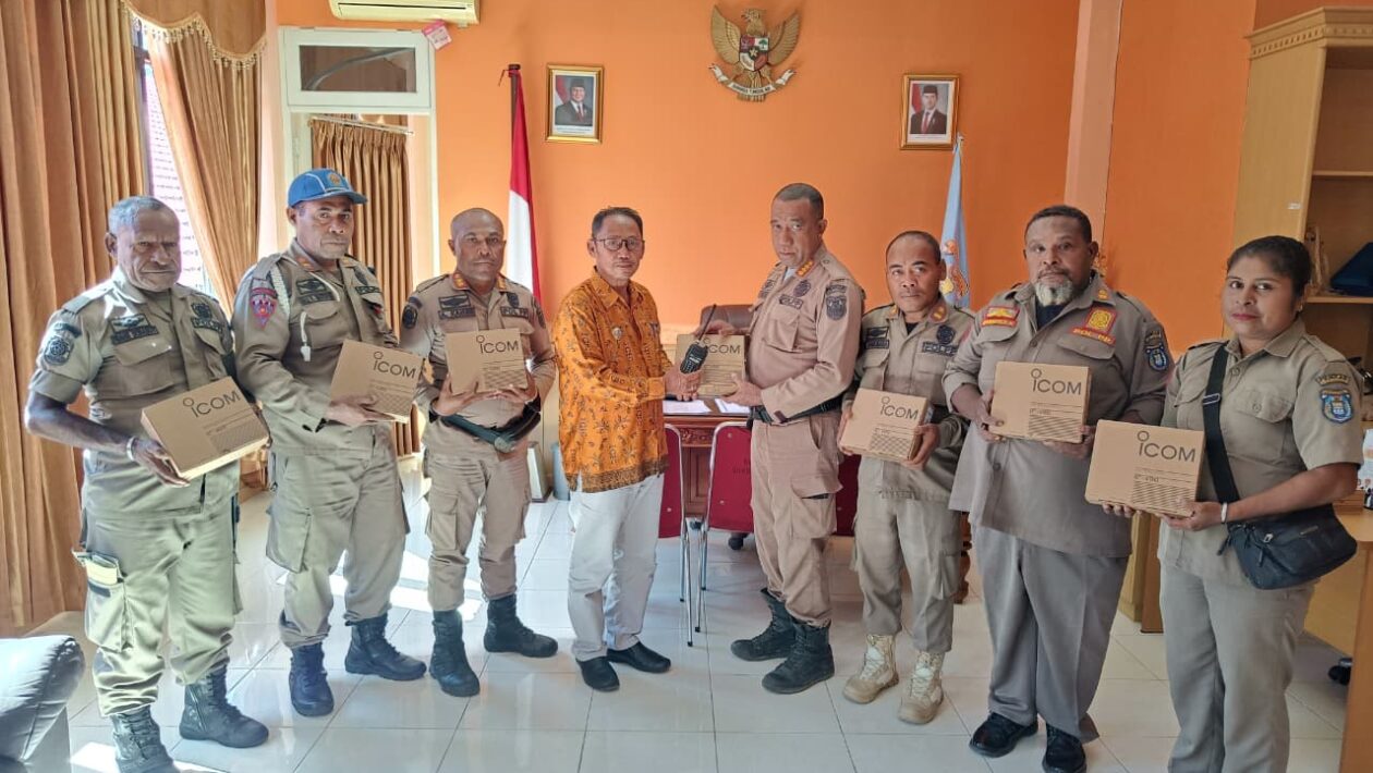 (pelitaekspres.com) – SERUI – Pemerintah Kabupaten Kepulauan Yapen kembali menunjukkan komitmennya dalam mendukung peningkatan kinerja aparat penegak peraturan daerah. Bentuk dukungan tersebut diwujudkan melalui penyerahan alat komunikasi Handy Talkie (HT) kepada Satuan Polisi Pamong Praja (Satpol PP) Kabupaten Kepulauan Yapen.