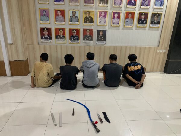 “Benar semalam, Tim patroli gabungan berhasil menggagalkan aksi tawuran dan mengamnkan 5 remaja berikut sejumlah sajam,” Kata Kompol Sugeng Sumanto, Sabtu (28/12/2024).