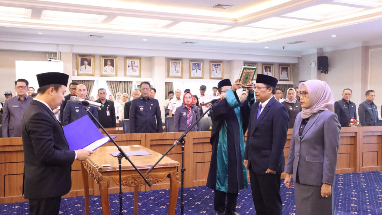 (pelitaekspres.com) –BANDAR LAMPUNG – Atas nama Gubernur Lampung, Sekdaprov Marindo Kurniawan melantik dan mengambil Sumpah/Janji Jabatan 2 Pejabat Pimpinan Tinggi Pratama di lingkungan Pemerintah Provinsi Lampung, di Ruang Rapat Utama, Rabu (6/8/2025).