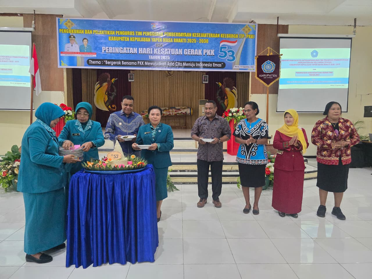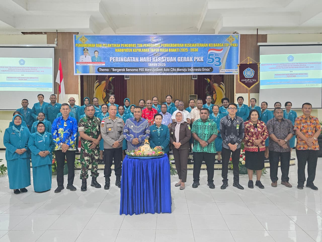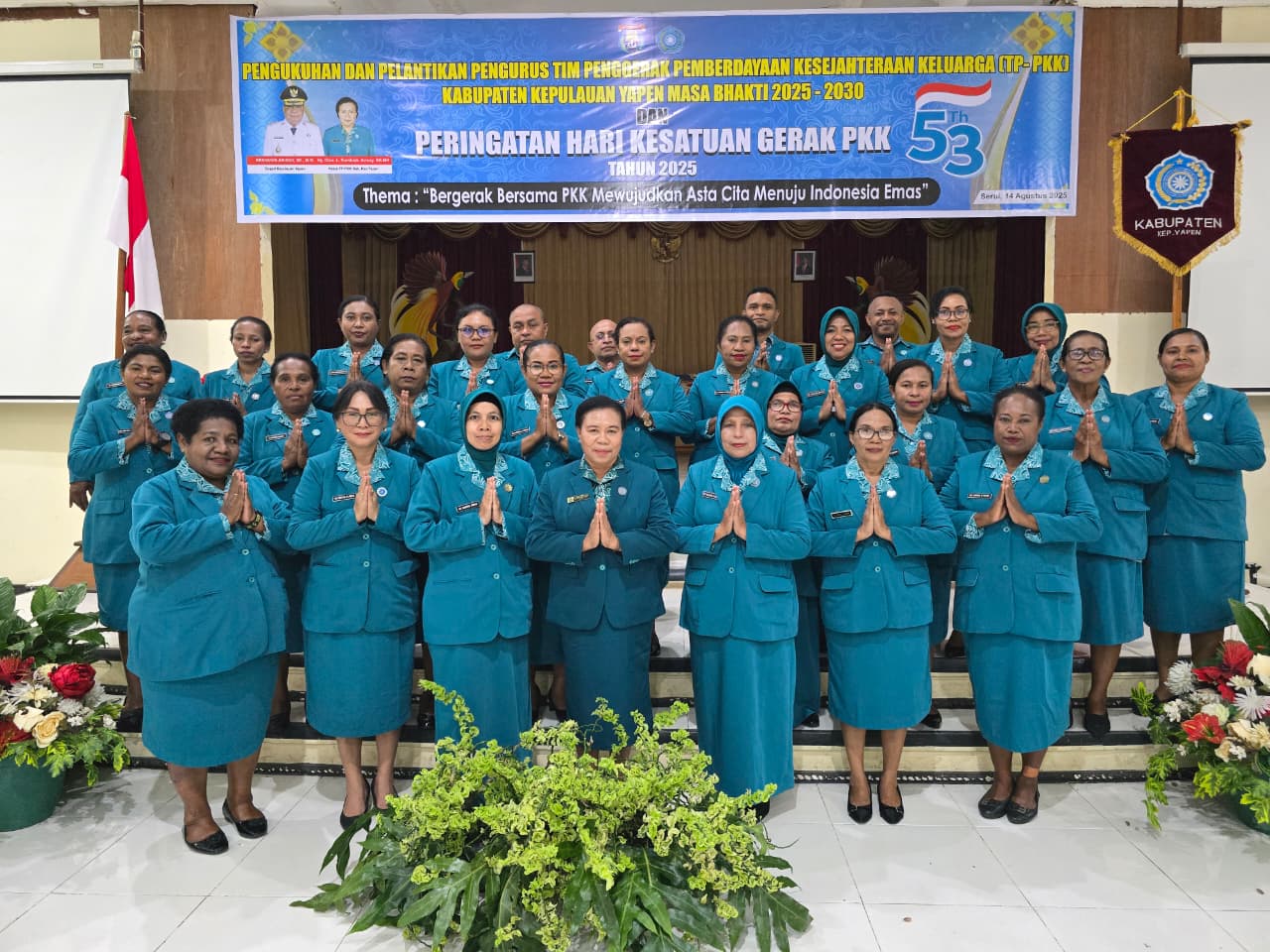 Acara ini dihadiri langsung oleh Bupati Kepulauan Yapen, Benyamin Arisoy, S.Sos., M.Si., dan Ketua TP-PKK Kepulauan Yapen, Ny. Dina L. Rumbiak Arisoy, SH., MH., serta dirangkaikan dengan pengukuhan dan pelantikan Pengurus TP-PKK Masa Bhakti 2025–2030.