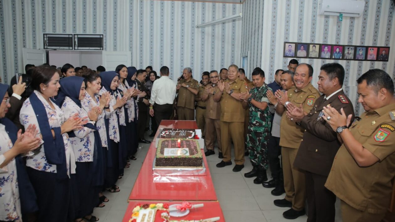 (pelitaekspres.com) -ASAHAN – Dalam balutan suasana sederhana, Bupati Asahan, Taufik Zainal Abidin, S.Sos., M.Si, bersama Wakil Bupati Asahan, Rianto, SH, MAP, Kapolres Asahan, AKBP Revi Nurvelani, Dandim 0208/Asahan, Letkol Edy Syahputra, Sekretaris Daerah Kabupaten Asahan, serta sejumlah kepala OPD hadir memberikan ucapan selamat ulang tahun ke-80 kepada Kejaksaan Negeri Asahan. Kehadiran Forkopimda tersebut menjadi wujud nyata sinergi dan dukungan kepada Kepala Kejaksaan Negeri Asahan, Basril G. SH, MH, beserta jajaran.Selasa (2/9/2025).