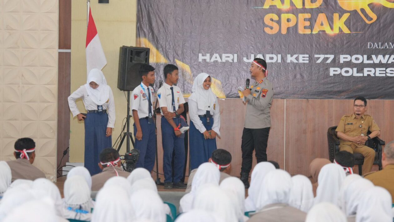 Acara bertema “Raise and Speak” dengan tagar #BeraniBicaraSelamatkanSesama ini dihadiri ratusan siswa SMP, jajaran pejabat Polres, serta perwakilan PGRI, MKKS, dan FKKS.