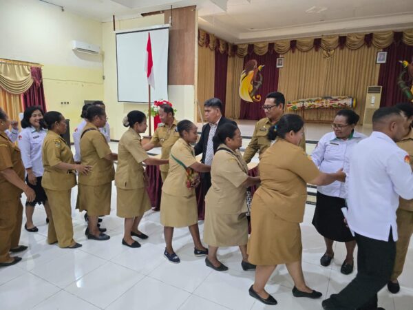 Seusai ibadah, Wakil Bupati Roi Palunga bersama Plt. Sekretaris Daerah Harold Weno, Pelayan Firman, serta pimpinan OPD bersalaman dengan seluruh ASN yang hadir sebagai wujud kebersamaan dan penguatan iman dalam pelayanan serta pengabdian.(GM)