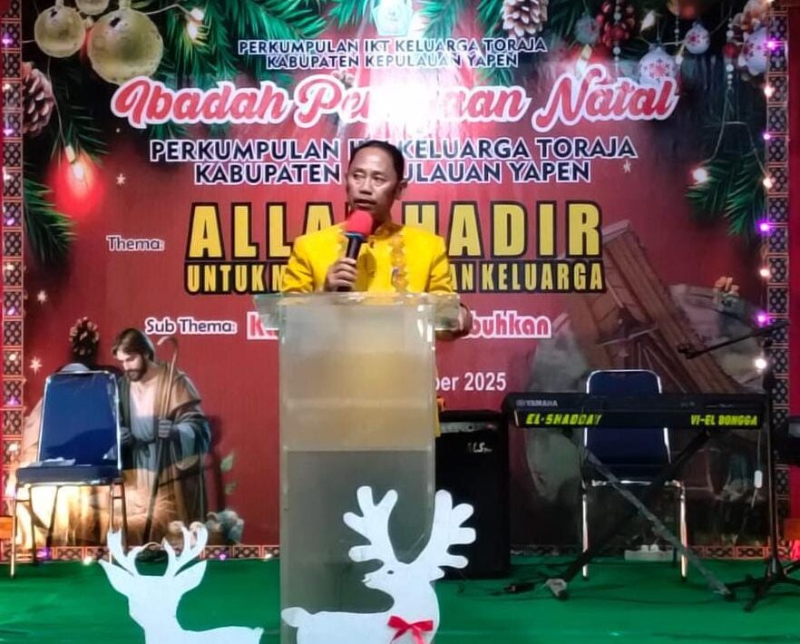 Dalam sambutannya, Ketua Umum IKT sekaligus Wakil Bupati Kepulauan Yapen, Roi Palunga, mengajak seluruh keluarga—baik inti rumah tangga maupun keluarga besar IKT—untuk selalu menghadirkan Tuhan dalam kehidupan sehari-hari. “Dengan kehadiran Tuhan, keluarga kita akan terlindungi dan diberkati,” tegas Roi, menegaskan pesan utama perayaan Natal kali ini.Roi juga menyampaikan optimisme menutup tahun 2025 dengan penuh berkat, sekaligus berharap 2026 menjadi tahun mujur bagi seluruh warga IKT di Kepulauan Yapen.