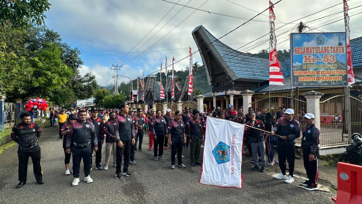 (pelitaekspres.com) -SERUI – Pagi itu, udara segar Serui semakin semarak dengan keceriaan ratusan warga yang berkumpul di Gedung Tongkonan. Mereka datang dengan penuh antusias, mengenakan pakaian olahraga berwarna-warni, siap mengikuti jalan santai berhadiah dalam rangka memperingati Hari Ulang Tahun ke-53 Perkumpulan Ikatan Keluarga Toraja (IKT) Kabupaten Kepulauan Yapen.