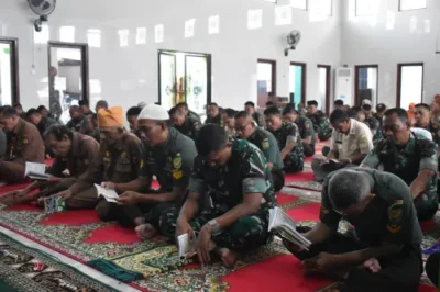 (pelitaekspres.com) -BANDAR LAMPUNG – Prajurit, PNS Korem 043/Gatam beserta jajaran mengikuti do’a bersama dalam rangka menyambut Hari Juang TNI AD Ke-78 Tahun 2023, dilaksanakan di Masjid Al-Ikhlas, kegiatan diawali dengan pembacaan surah yasin, dilanjutkan do’a yang dipimpin oleh Kabintal Korem 043/Gatam Kapten Cba Mohalli. Kamis (14/12/2023)