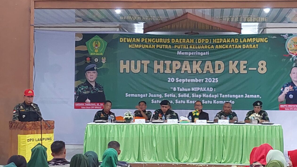 Ketua DPD HIPAKAD Lampung Wahyu Widiyatmiko, S.H, M.H, CPM mengatakan, hari ini kita berkumpul di Rayon Teluk Pandan, Kabupaten Pesawaran dengan suasana penuh kebanggan memperingati HUT HIPAKAD Ke-8 HIPAKAD Provinsi Lampung Tahun 2025 dengan Tema “Semangat Juang, Setia, Solid siap hadapi tantangan Zaman’.