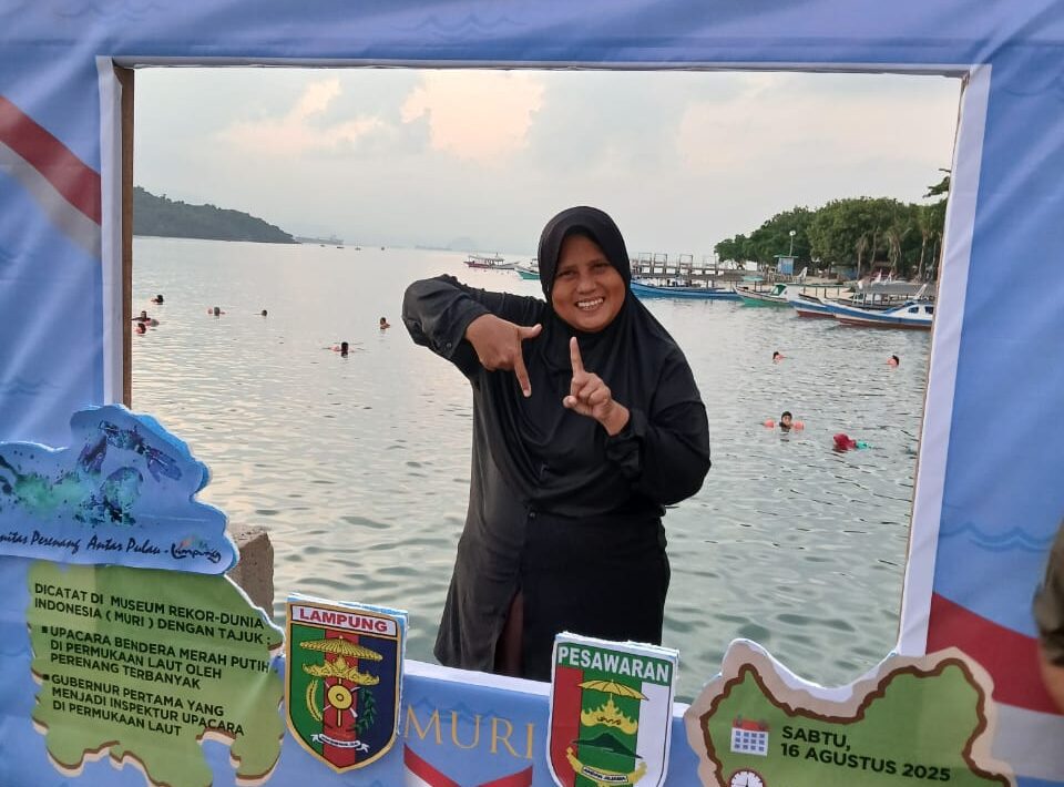 “Berenang Merdeka 2025”, yang digelar oleh Komunitas Perenang Antar Pulau Lampung (KPAPL) di perairan antara Pulau Tangkil.