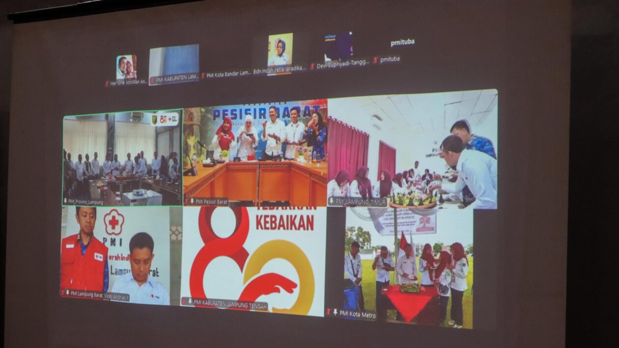 Acara Gebyar HUT PMI ke-80 diisi dengan zoom bersama seluruh pengurus PMI di kabupaten/kota se-Provinsi Lampung, dilanjutkan dengan pemotongan tumpeng bersama pengurus.