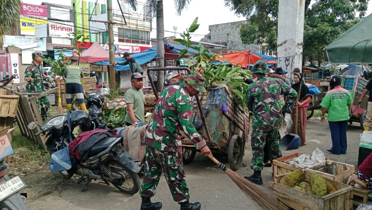 (pelitaekspres.com) – BANDAR LAMPUNG – Bertempat di Pasar Panjang, Koramil 410-01/Panjang melaksanakan kegiatan kerja bakti massal bertajuk “Senin Bersih” pada hari Senin, 29 September 2025. Kegiatan yang berlangsung mulai pukul 07.30 WIB ini bertujuan untuk membersihkan lingkungan pasar sekaligus mempererat hubungan kemitraan antara TNI dengan warga masyarakat.