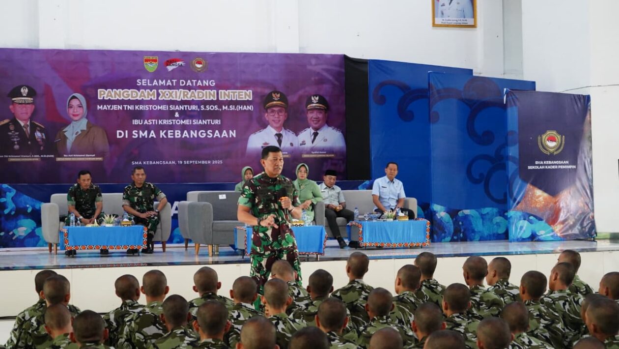 (pelitaekspres.com) –LAMPUNG – Pangdam XXI/Radin Inten Mayjen TNI Kristomei Sianturi, S.Sos., M.Si., (Han) didampingi Ketua Persit KCK Daerah XXI/Radin Inten Ny. Asti Kristomei Sianturi, Danrem 043/Gatam Brigjen TNI Haryantana, S.H., Ketua Persit KCK Koorcab Rem 043 PD XXI/RI, serta rombongan, melaksanakan kunjungan kerja ke wilayah Kodim 0421/Lampung Selatan, Jumat (19/09/2025).