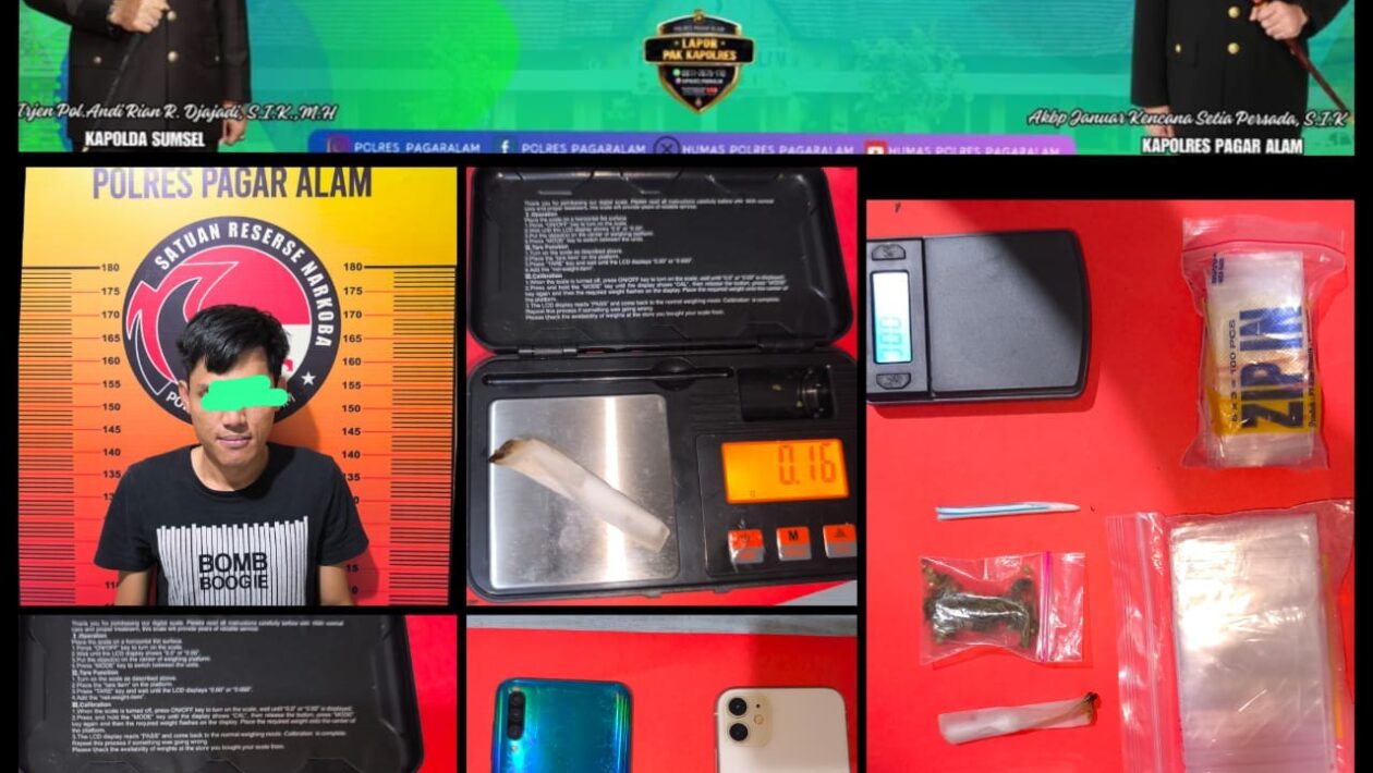 (pelitaekspres.com) –PAGARALAM– Polres Pagar Alam Melalui Satresnarkoba Polres Pagaralam berhasil mengungkap kasus tindak pidana narkotika jenis ganja dengan menangkap seorang pengedar berinisial Danang Edi Purwanto (27) di sebuah rumah kawasan Griya Abdi Negara, Kelurahan Selibar, Kecamatan Pagar Alam Utara, Rabu (10/9/2025) sekitar pukul 03.00 WIB. Dari tangan tersangka, polisi mengamankan sejumlah barang bukti narkotika jenis ganja serta peralatan yang diduga digunakan untuk memperdagangkan barang haram tersebut.