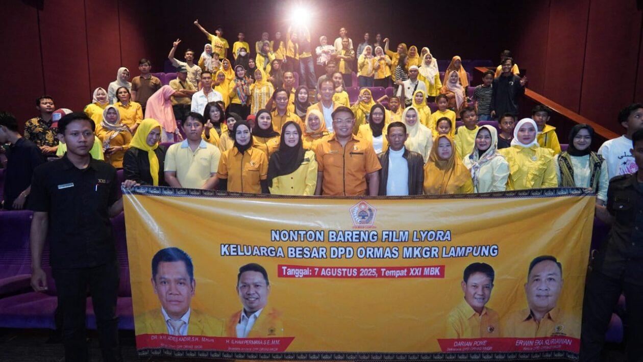 (pelitaekspres.com) –BANDARLAMPUNG- Organisasi Masyarakat Musyawarah Kekeluargaan Gotong Royong (MKGR) Provinsi Lampung menggelar Nonton Bareng (Nobar) Film Lyora bersama ratusan kader dan simpatisan di XXI MBK, Kamis (7/7/2025).