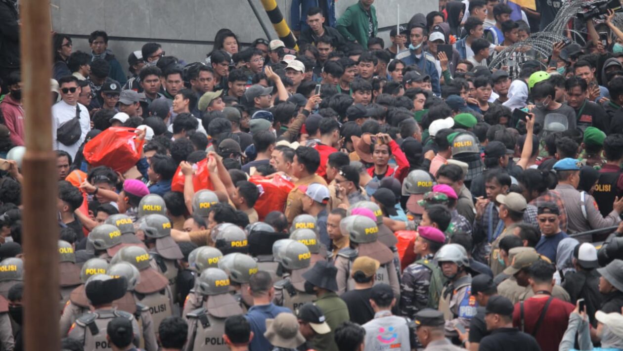 Kehadiran pegawai Pemprov dengan plastik merah berisi camilan seakan menjadi jeda yang menyejukkan di tengah dinamika aksi. Serba-serbi kecil ini membuktikan bahwa unjuk rasa tidak selalu identik dengan ketegangan, melainkan juga bisa memunculkan sisi humanis yang menghangatkan suasana.