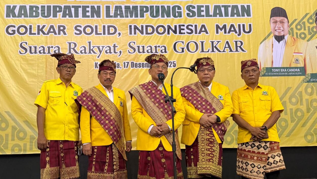 (pelitaekspres.com) -LAMSEL- Di tengah gemuruh semangat konsolidasi politik, Gedung Olahraga Mustafa Kemal di Kalianda, Lampung Selatan, menjadi saksi sebuah peristiwa yang tak hanya bermakna bagi Partai Golkar, tapi juga bagi warisan budaya Sai Bumi Ruwa Jurai. Pada Rabu, 17 Desember 2025, pembukaan Musyawarah Daerah (MUSDA) XI Dewan Pimpinan Daerah (DPD) Partai Golkar Kabupaten Lampung Selatan dimulai dengan nuansa budaya Lampung yang begitu kental, menyentuh hati setiap yang hadir dan mengingatkan kita pada akar identitas bangsa.