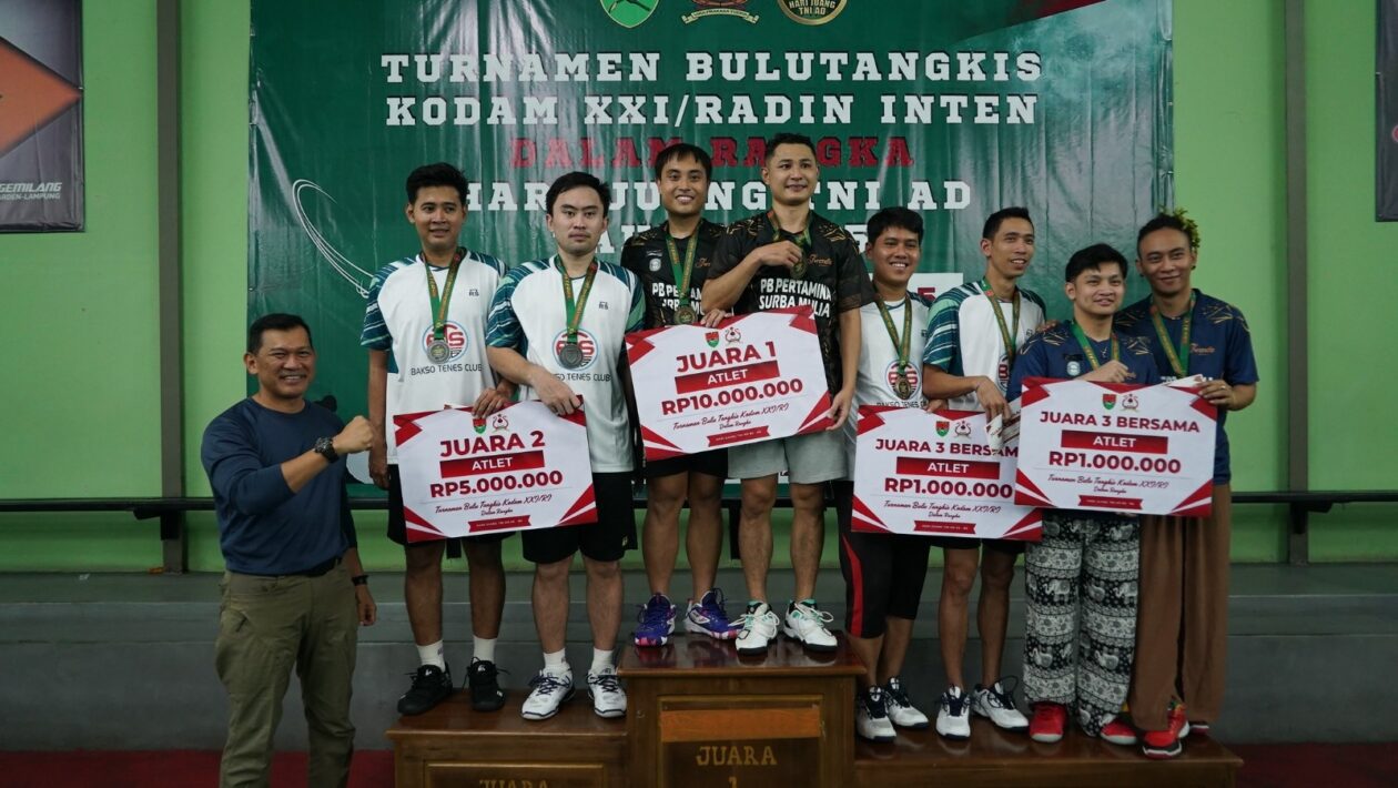 (pelitaekspres.com) –BANDAR LAMPUNG – Panglima Kodam XXI/Radin Inten, Mayjen TNI Kristomei Sianturi, S.Sos., M.Si. (Han)., secara resmi menutup Turnamen Bulu Tangkis Kodam XXI/Radin Inten dalam rangka memperingati Hari Juang TNI Angkatan Darat Tahun 2025. Kegiatan penutupan berlangsung di GOR Gemilang, Jalan Dr. Setia Budi No. 100, Negeri Olok Gading, Kecamatan Teluk Betung Barat, Kota Bandar Lampung, Senin (15/12/2025).
