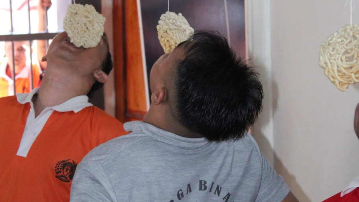 Lomba makan kerupuk warga binaan menjadi hiburan yang mengundang tawa. Dengan gaya unik masing-masing peserta, kegiatan ini menciptakan suasana ceria dan menjadi momen yang dinanti dalam rangkaian lomba.