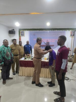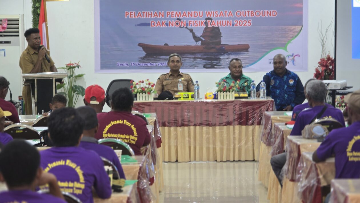 (pelitaekspres.com) – SERUI —Pemerintah Kabupaten Kepulauan Yapen melalui Dinas Pariwisata, Pemuda, dan Olahraga menggelar Pelatihan Pemandu Wisata Outbound sebagai upaya meningkatkan kualitas sumber daya manusia pariwisata di daerah tersebut. Kegiatan ini berlangsung di Aula Hotel Merpati Serui, Senin (15/12/2025).