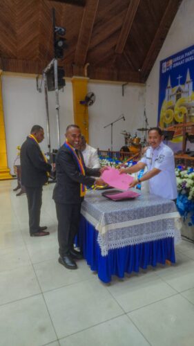 Hadir pula perwakilan Kementerian Agama Serui, Pdt. Philipus Yowei, para pejabat gereja, penasehat Majelis Daerah, majelis wilayah, para gembala dari Zona IV, hamba-hamba Tuhan lintas denominasi, serta tamu undangan penting lainnya.