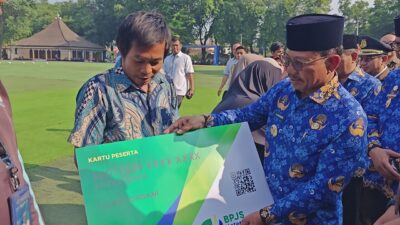 “Tak hanya itu, pemerintah turut memberikan bantuan iuran Jaminan Kecelakaan Kerja (JKK) dan Jaminan Kematian (JKM) bekerjasama dengan BPJS Ketenagakerjaan bagi 10.130 pekerja rentan dan 980 Pekerja Sosial Masyarakat (PSM) sebagai upaya memperluas perlindungan sosial ketenagakerjaan kepada pekerja rentan Kota Tangerang,” dan penyerahan simbolis diberikan kepada satu perwakilan Penerima Manfaat dengan menyerahkan Kartu peserta, tutur Mulyani.