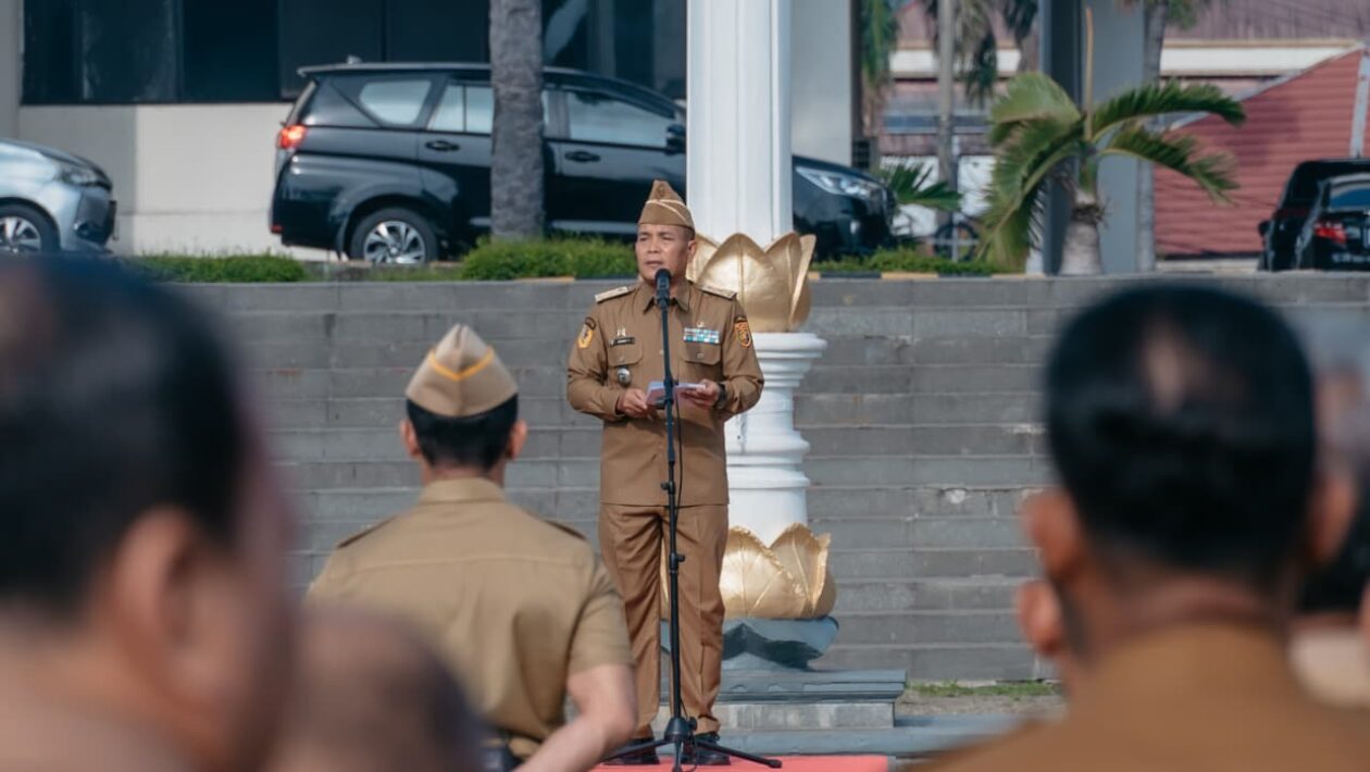 (pelitaeskpres.com) –BANDAR LAMPUNG – Gubernur Lampung yang diwakili Staf Ahli bidang Pemerintahan, Hukum dan Politik, Achmad Saefulloh memimpin apel mingguan di lingkungan Sekretariat Daerah Provinsi Lampung, di Lapangan Korpri, Senin (13/10/2025).