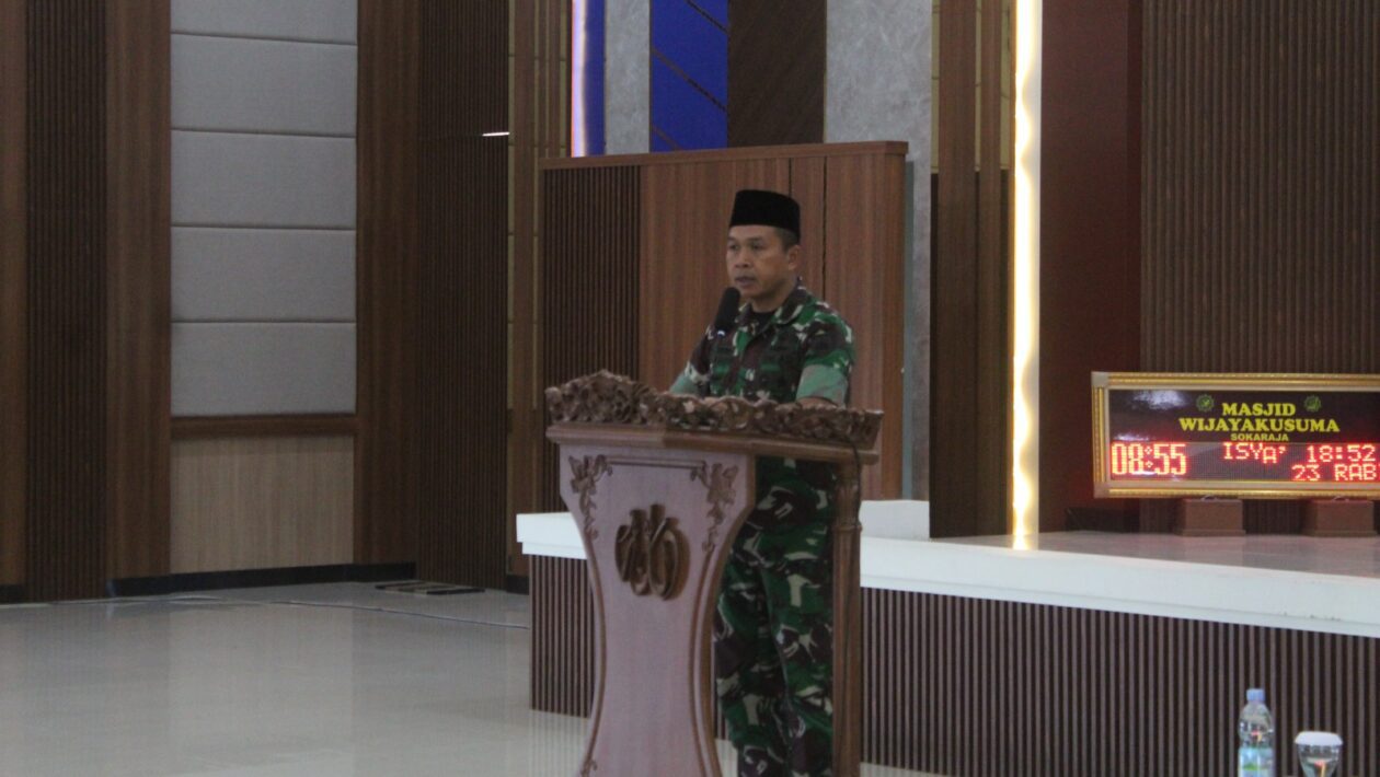 Hal itu, disampaikan Danrem dalam sambutannya didepan prajurit, PNS dan Persit KCK Koorcab Rem 071 PD IV/Diponegoro pada Peringati Maulid Nabi Muhammad SAW dengan mengusung tema “Membangun Karakter Personil TNI prima Melalui Sunnah Rasulullah”, di Masjid Wijayakusuma Makorem 071/Wijayakusuma Sokaraja, Banyumas. Senin (15/9/2025).