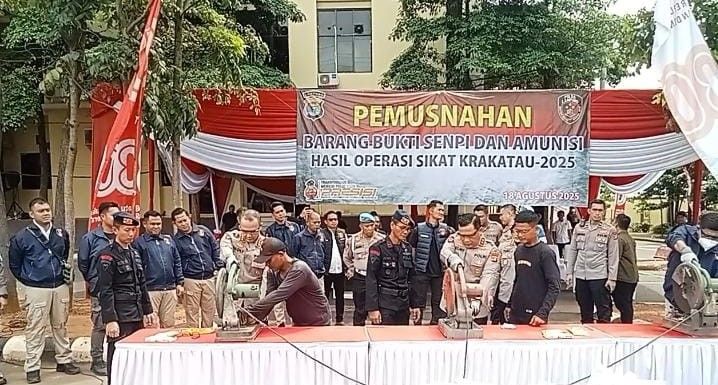 (pelitaekspres.com) –LAMPUNG – Kepolisian Daerah Lampung musnahkan 50 senjata api ilegal hasil dari Operasi Sikat Krakatau 2025 yang digelar dalam dua pekan dari 4 hingga 17 Agustus.