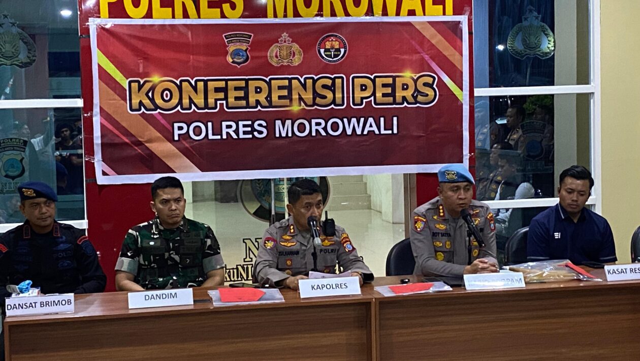 Konferensi pers dihadiri Kapolres Morowali Akbp Zulkarnain, Kabid Propam Polda Sulawesi Tengah Kombes Pol Roy Satya Putra S.I.K., Dansat Brimob Polda Sulawesi Tengah Kombes Pol Kurniawan Tandi Rongre S.I.K., M.Si., Dandim 1311 Morowali Letkol Inf. Abraham S. Panjaitan, serta Kasat Reskrim Polres Morowali Akp Erick Siagian.