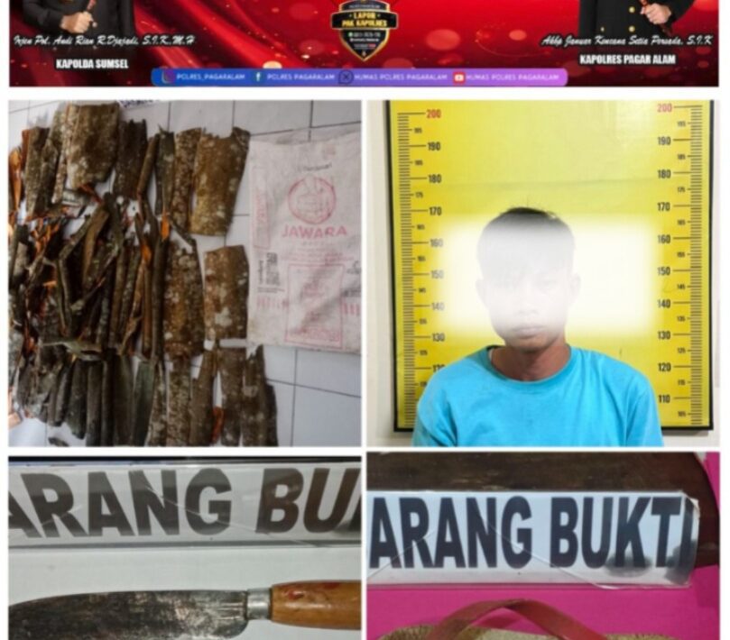 (pelitaekspres.com) –PAGARALAM–Andriansyah (31) asal Desa Penantian, Kecamatan Jarai, Kabupaten Lahat, yang berprofesi sebagai petani harus merasakan pahitnya dinding sel tahanan Polsek Pagaralam Utara.setelah  melukai pemilik kebun yang memergokinya mencuri kulit kayu manis di wilayah Kelurahan Selibar, Kecamatan Pagaralam Utara, Kamis (9/10/2025) pagi.