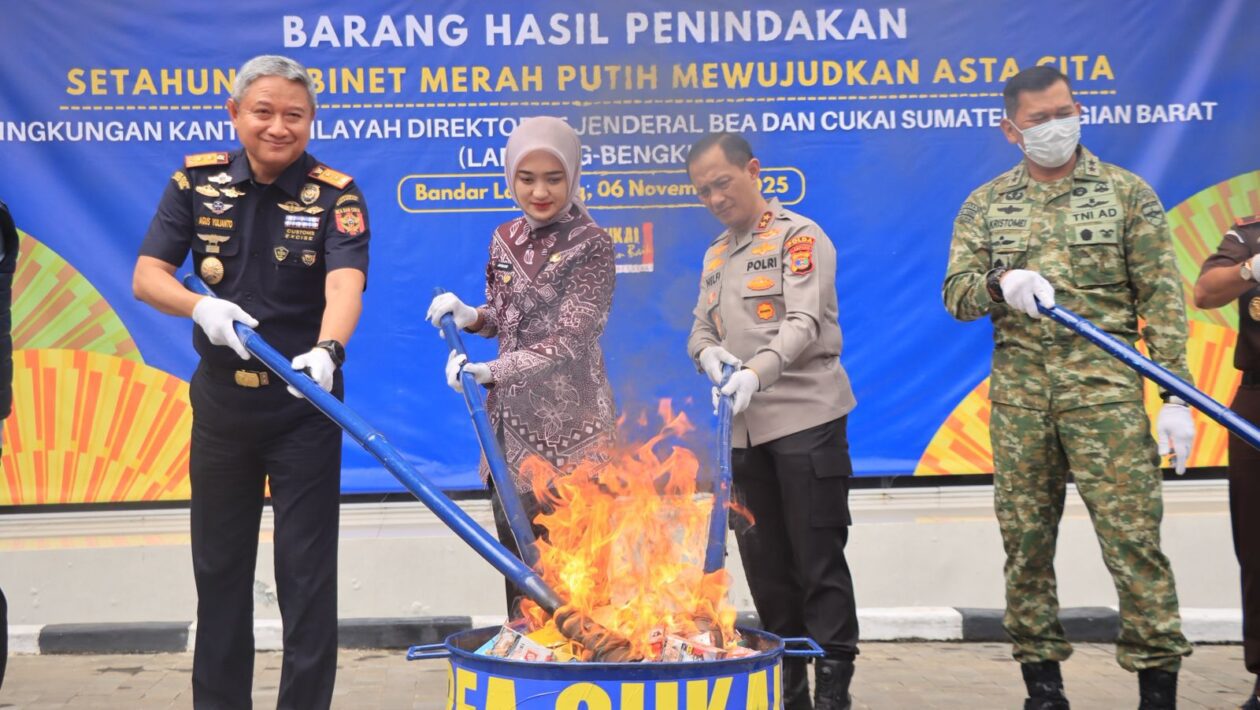 Bea Cukai Kanwil Lampung juga telah berhasil memusnahkan barang hasil penindakan sebanyak 29,8 juta batang rokok ilegal yang diamankan sejak September 2024 hingga Oktober 2025.