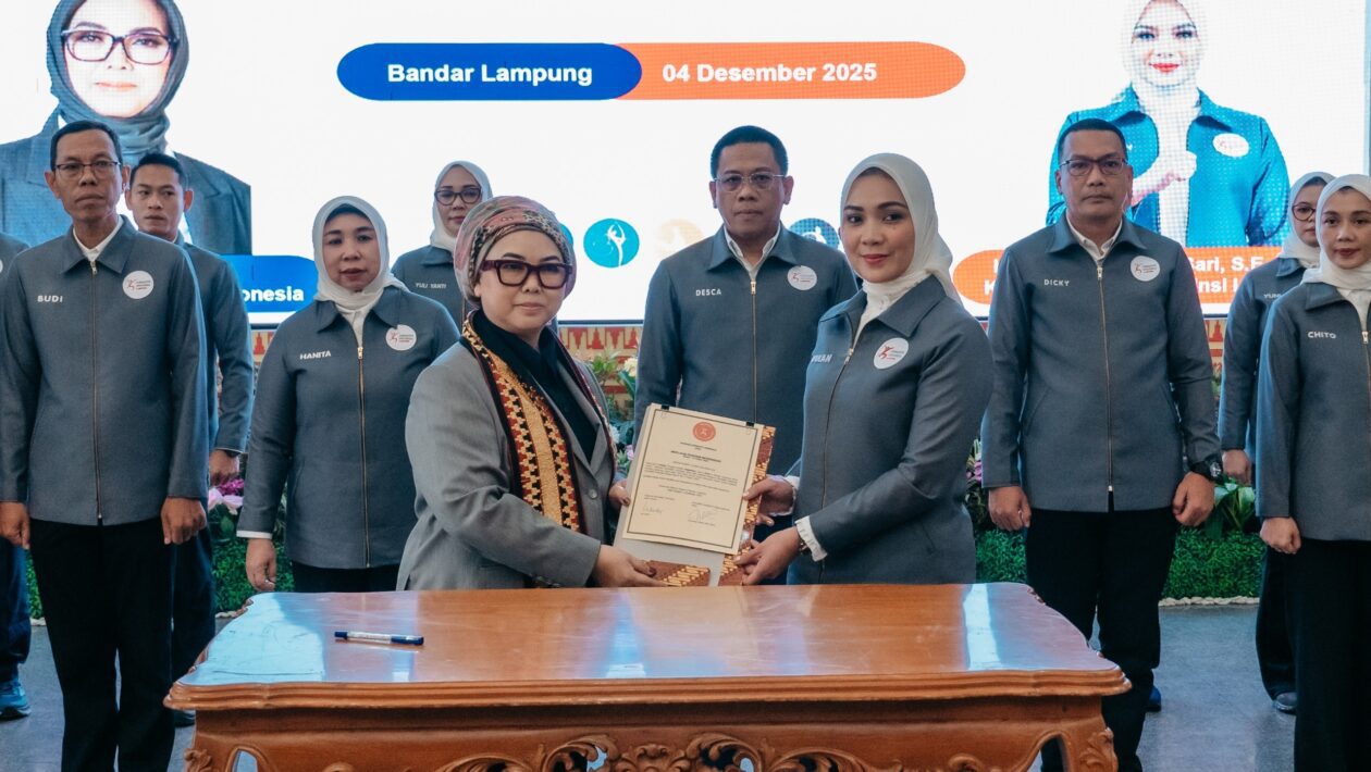 (pelitaekspres.com) –BANDAR LAMPUNG -Pengurus Gimnastik Indonesia Provinsi Lampung masa bakti 2025-2029 resmi dilantik dan dikukuhkan di Mahan Agung, Kamis (4/12/2025). Kepengurusan baru di bawah pimpinan Purnama Wulan Sari Mirza ini menargetkan peningkatan prestasi atlet senam Lampung dari level nasional hingga ke kancah internasional.