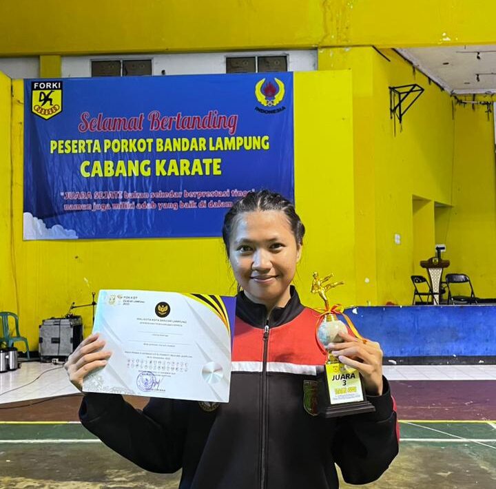 (pelitaekspres.com) -BANDAR LAMPUNG – Putri Widyah Saputri, mahasiswi Prodi Hukum Bisnis Institut Informatika dan Bisnis (IIB) Darmajaya berhasil meraih juara 3 dalam Pekan Olahraga Kota (Porkot) Bandar Lampung cabang olahraga Karate Minggu, (28/12/25) di GOR Sumpah Pemuda, Way Halim.
